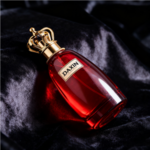 Una exhibición de sofisticación: El frasco de perfume de DAXIN se presenta en un elegante marco que realza su forma única y su intenso color lavanda. La simplicidad de la presentación permite que el diseño del frasco destaque, con sus suaves curvas y la sutil marca en la etiqueta. Este expositor no es solo para el frasco; es una celebración de la fragancia que contiene.
